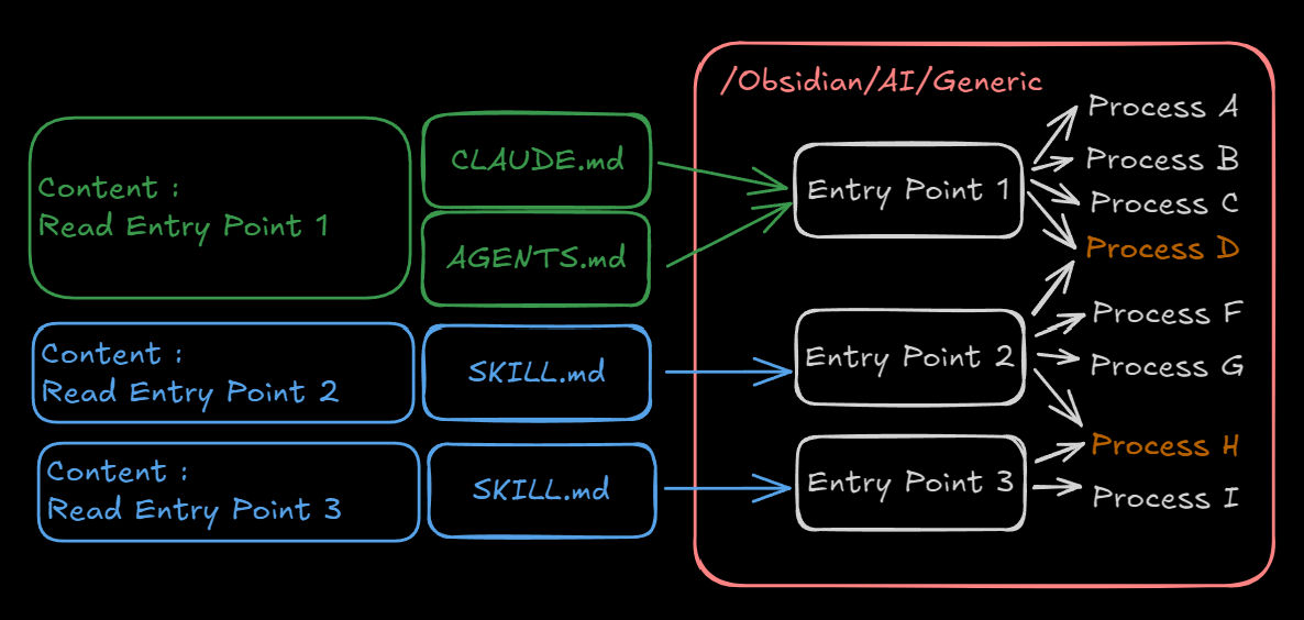 Et donc, pour aller au bout de la dĂ©marche, jâai créé un skill qui crĂ©e des skills minimalistes et les duplique entre tous les clients IA dĂ©tectĂ©s dans le rĂ©pertoire. Je ne me pose donc plus de question dĂ©sormais sur la synchronisation de mes IA avec mes process : seuls comptent mes points dâentrĂ©e et les processus unitaires par action en dessous. (Câest un peu drĂŽle dâailleurs, câest lâexacte mĂȘme approche que ma façon dâimplĂ©menter lâECS, câest du data driven project management par essence đ)